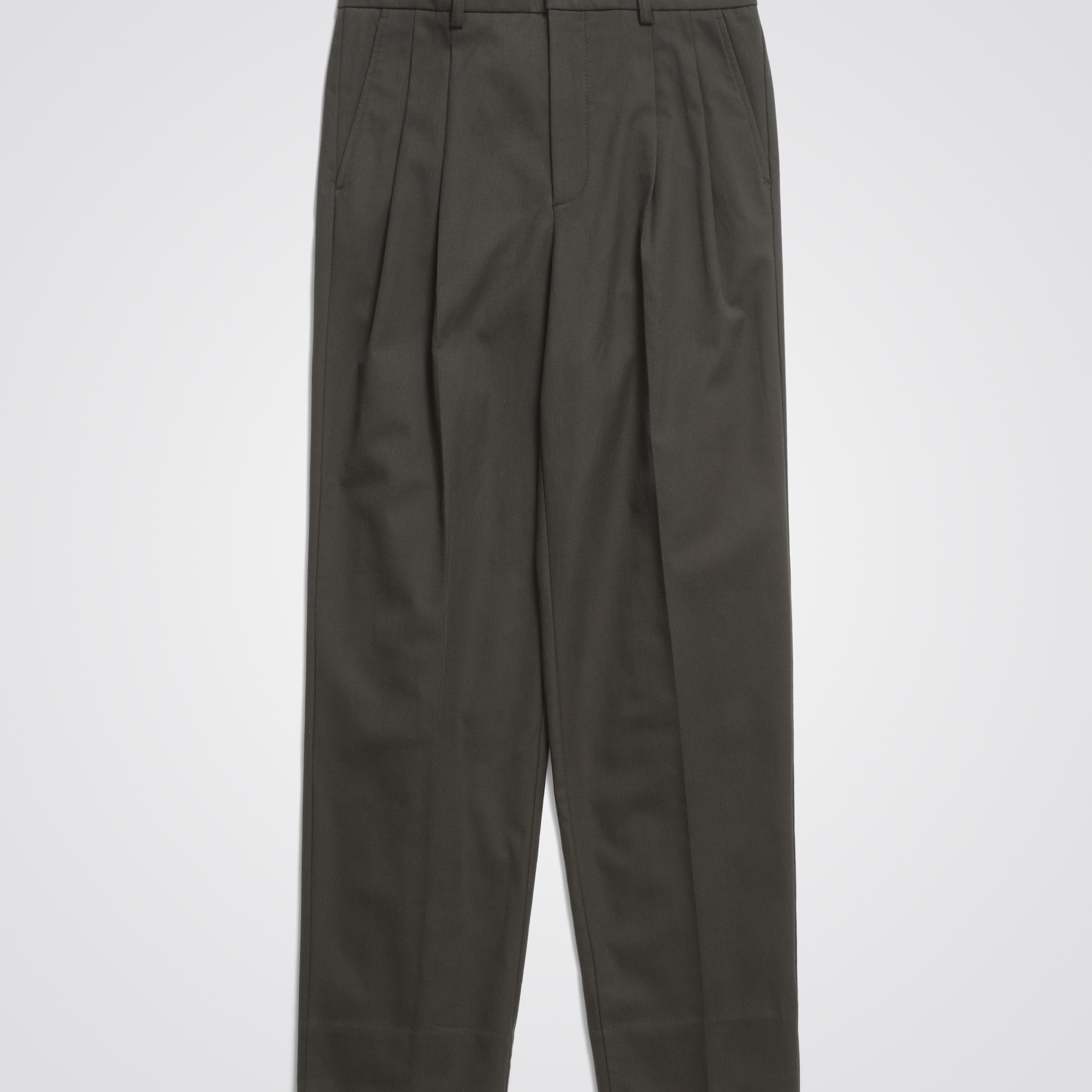 loading…Size ChartShippingAdd to CartA relaxed fitting tailored pant, cut with a loose leg and double pleats at the front. Constructed in a cotton wool blend fabric with a twill structure, that has a mid-weight drape. Finished with an internal half lining, zip fly and flap pocket details at the back.