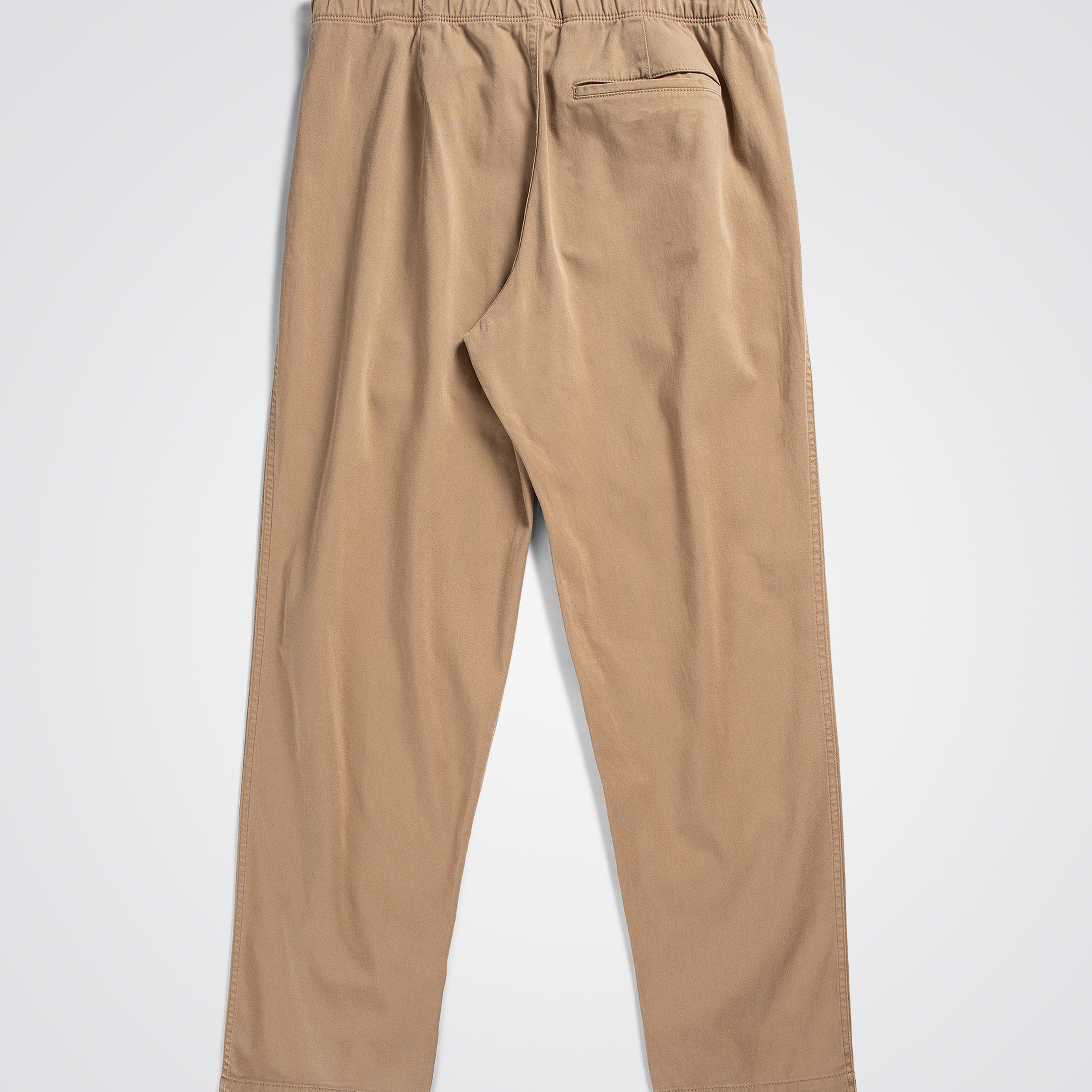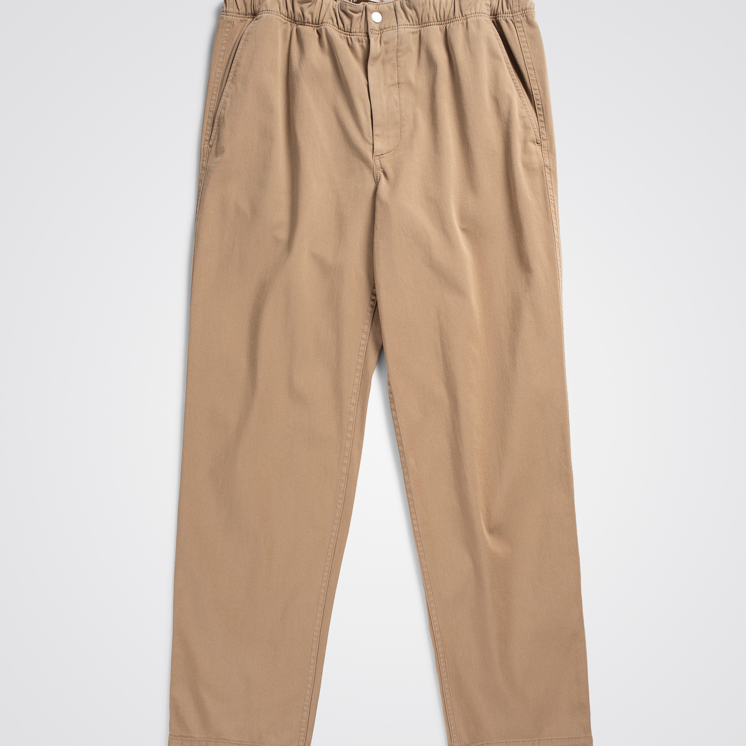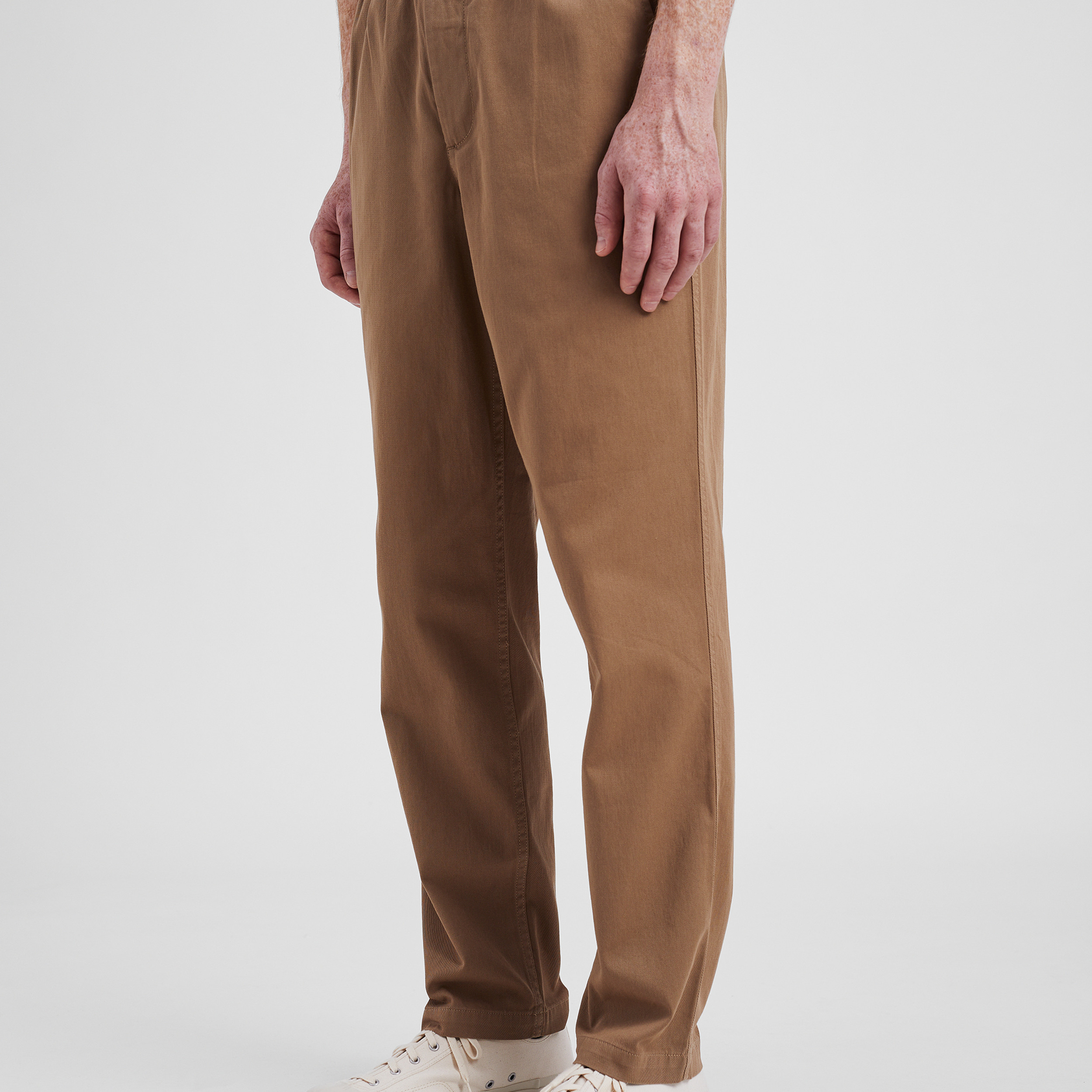 The Ezra Light Stretch is a relaxed fitting pant with a loose leg constructed from stretch organic cotton twill. The pants are garment-dyed for a rich colour. Finished with a zip fly, snap closure and drawstring waist.