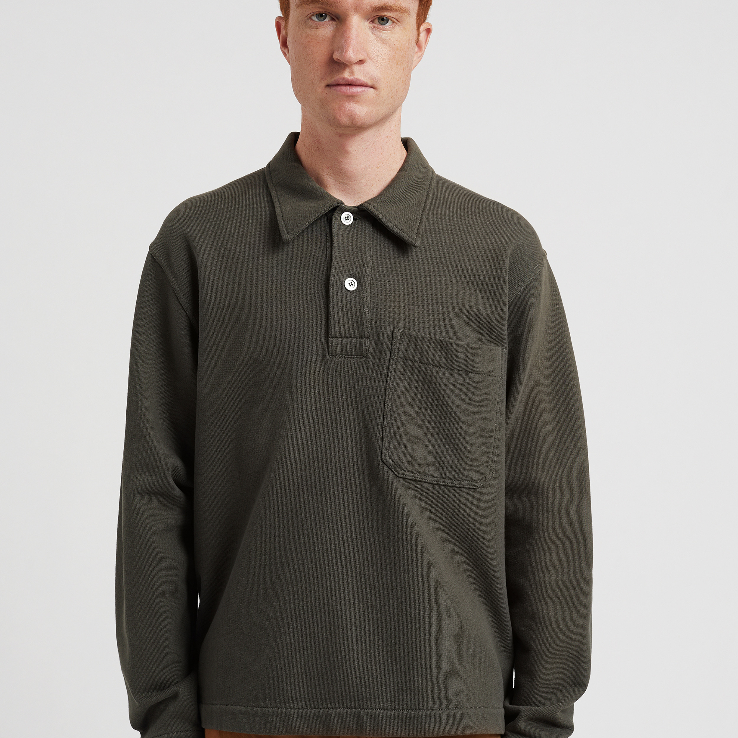 loading…ShippingAdd to CartA relaxed fitting quarter placket sweatshirt with set-in sleeves and cut in an organic loopback cotton fleece. The style features a collar, a placket with rivershell buttons and a chest pocket. Finished with a branded hang loop at the back neck.