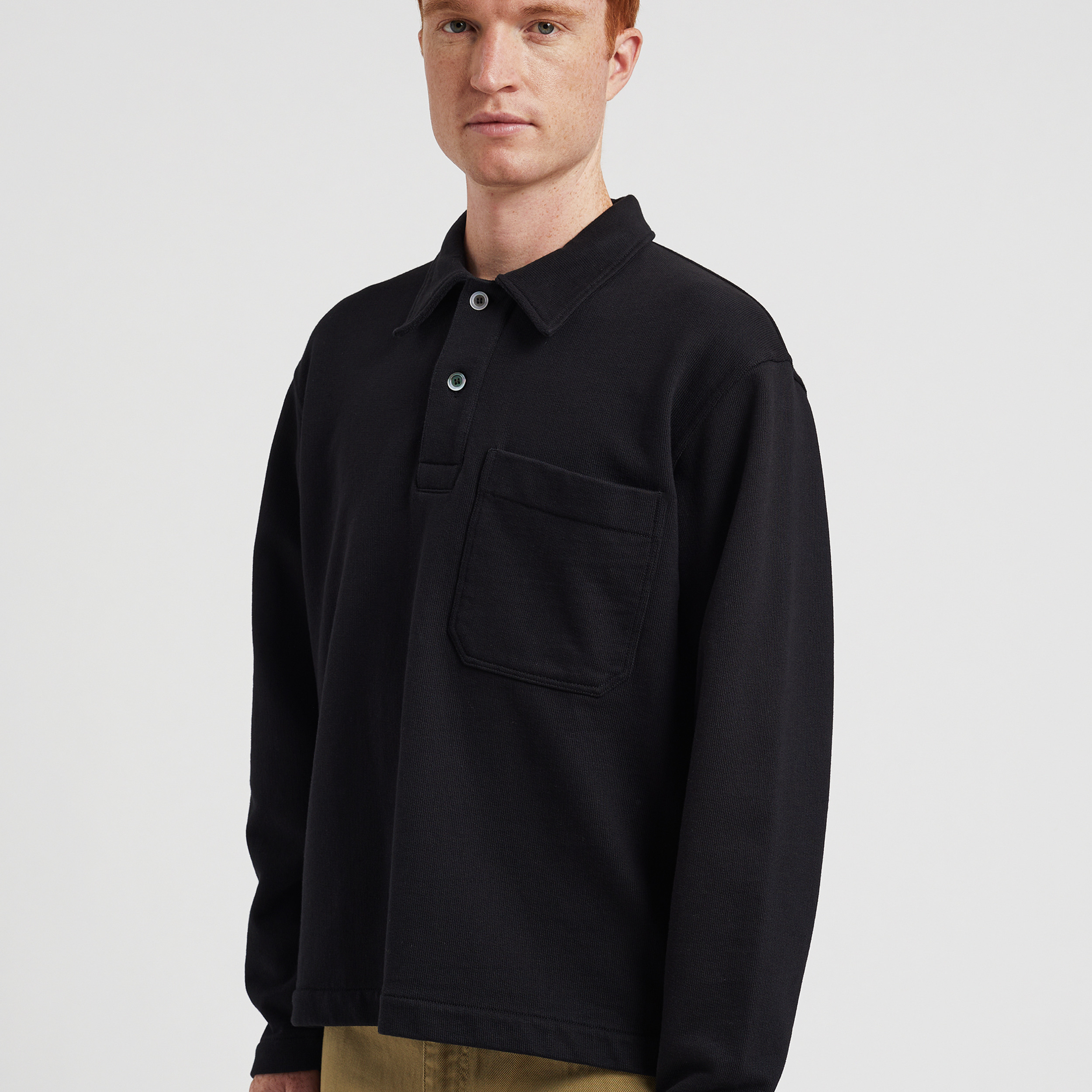 loading…ShippingAdd to CartA relaxed fitting quarter placket sweatshirt with set-in sleeves and cut in an organic loopback cotton fleece. The style features a collar, a placket with rivershell buttons and a chest pocket. Finished with a branded hang loop at the back neck.