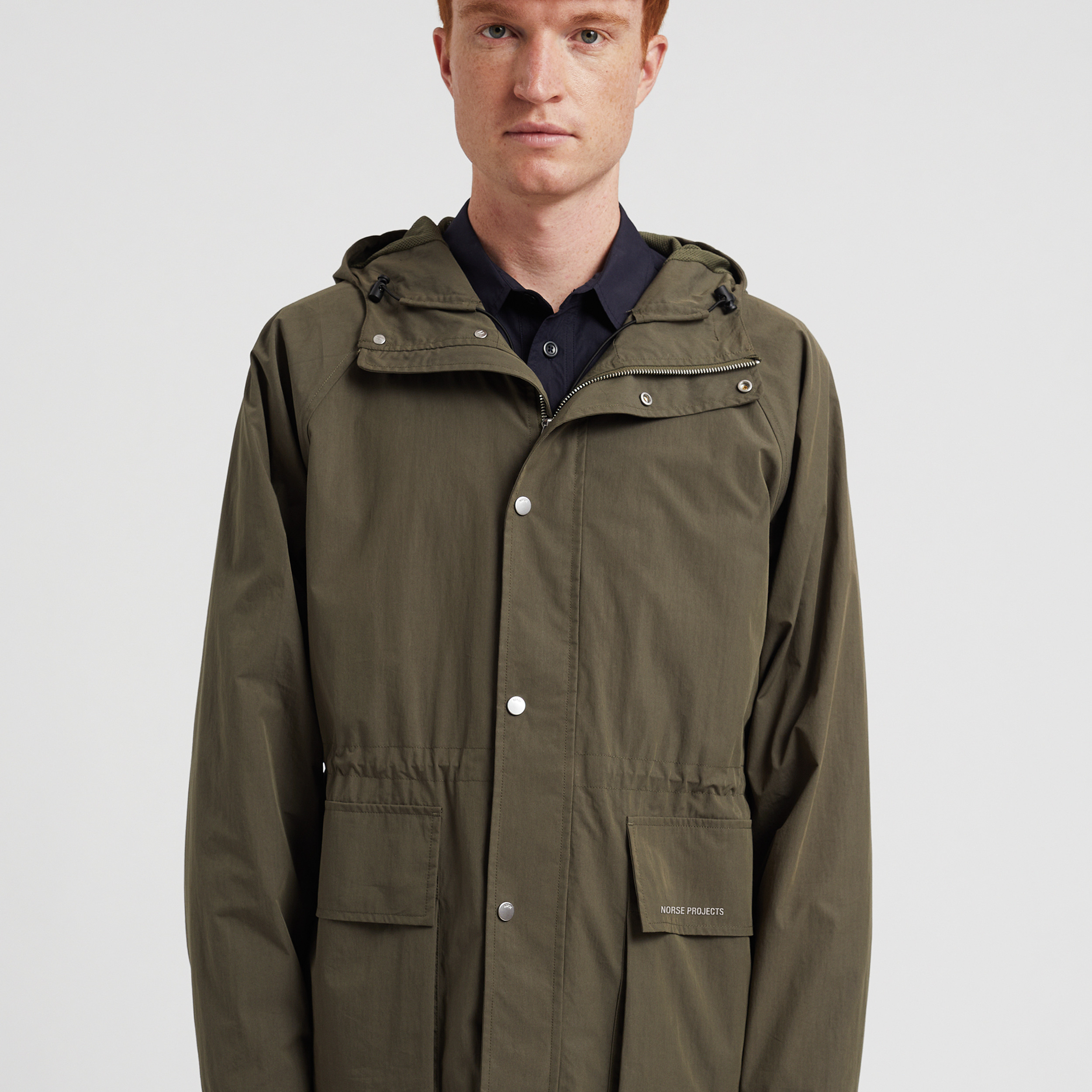 loading…Size ChartShippingAdd to CartA hooded windbreaker style, constructed from a cotton nylon water repellent poplin. The windbreaker is designed with a raglan sleeve, and features a zip and snap front closure. It is finished with adjustable elastic back hem and zip pockets.
