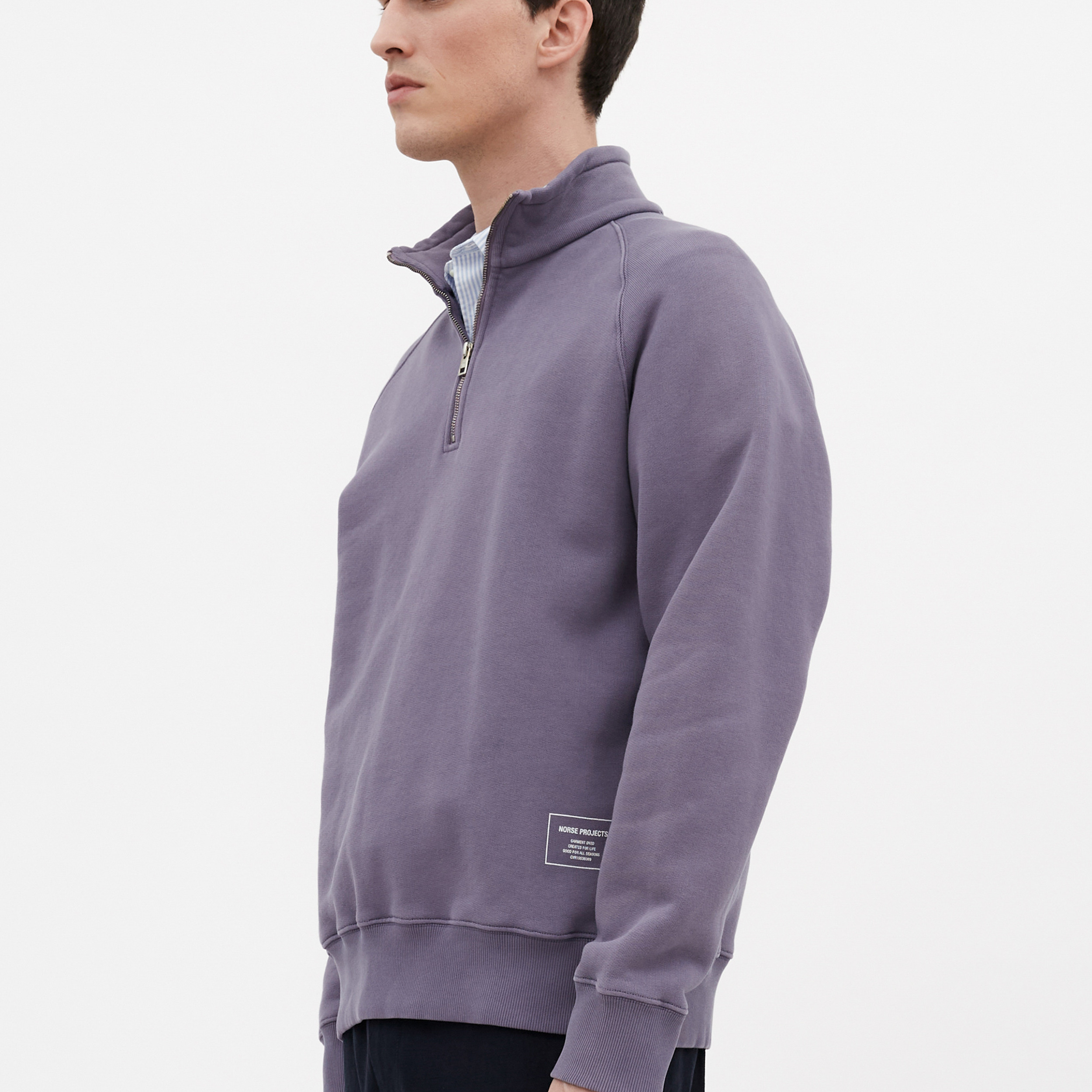 loading…Size ChartShippingAdd to CartA relaxed fitting half zip sweatshirt constructed in a brushed back sweat quality made of organic cotton featuring raglan sleeves. The style is garment dyed with a screen printed logo print on the front bottom. It is finished with a more tighter rib at cuffs and hem and twin needle stitching details.