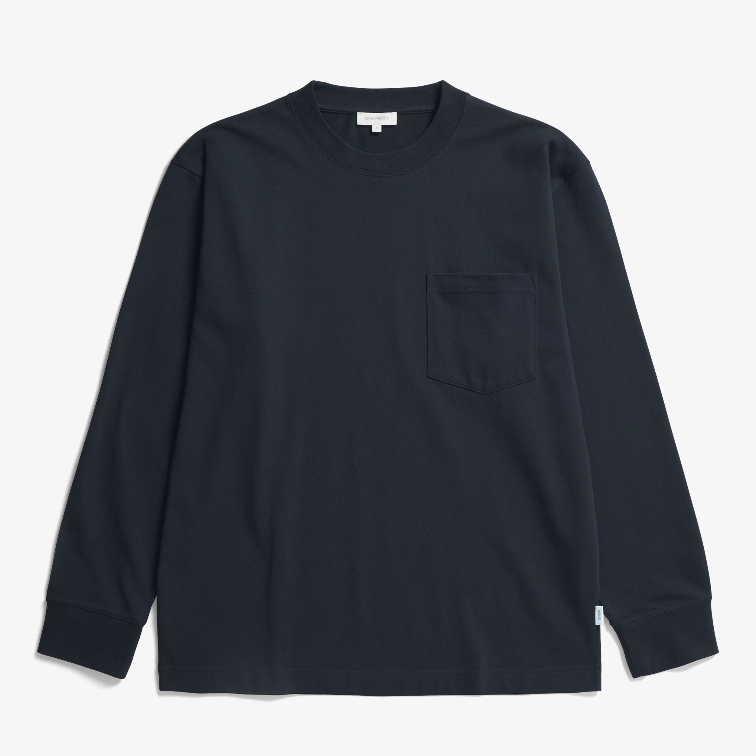 The Norse Standard Heavy Loose LS T-Shirt is made from heavyweight organic cotton, offering a loose fit. Crafted in Portugal, it features a ribbed collar, chest pocket and twin-needle stitched hem and cuffs.