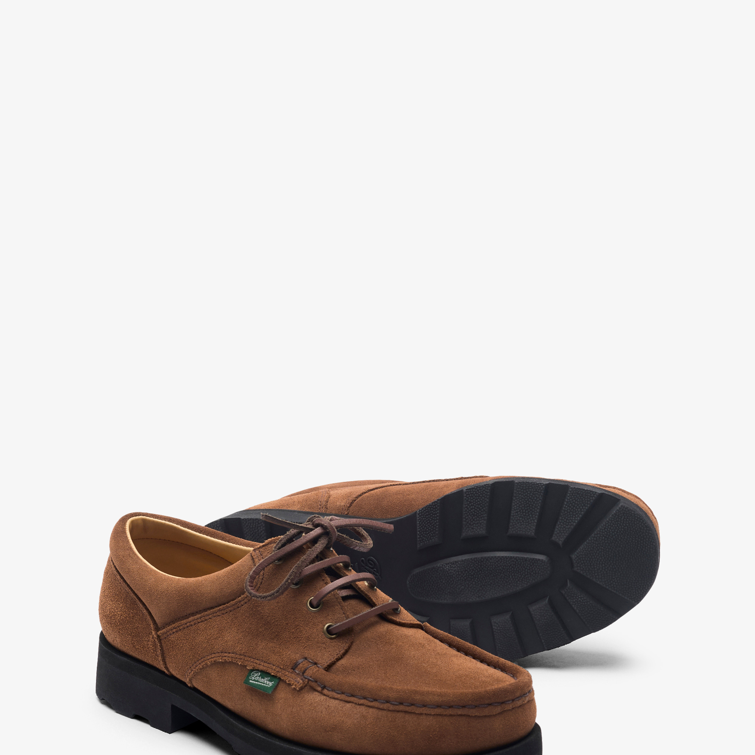 Based on a 1960s Paraboot silhouette, the design is re-iterated with leather laces and the “Rocade” outsole — a lightweight rubber sole made in France, carefully selected from the Paraboot archives.