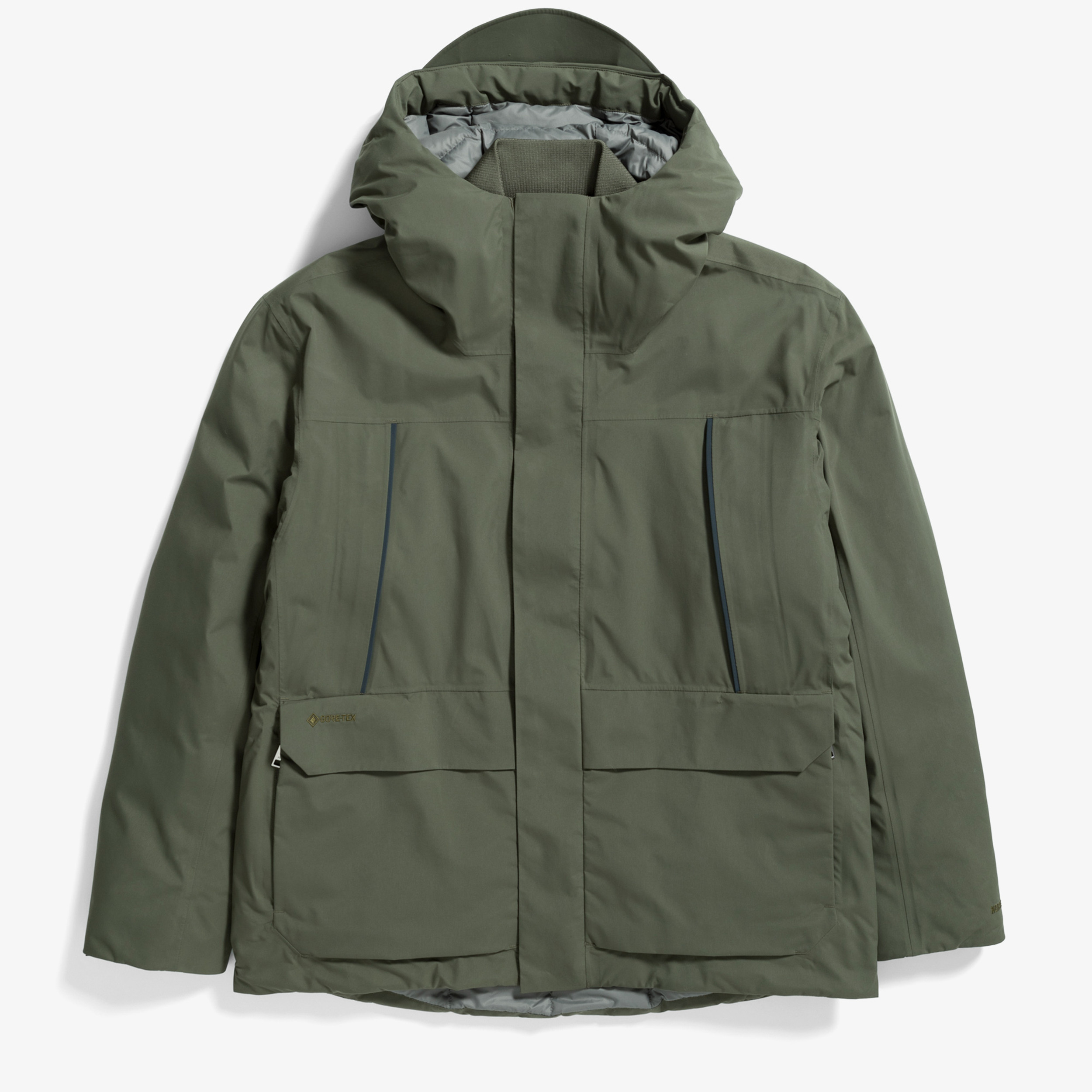 A mid-length jacket and a Norse Projects classic. Inspired by 1960’s mountain parkas, and developed in collaboration with GORE-TEX®, guaranteed to keep you dry™ technology. Featuring storm placket front construction with zip and snap closure. Hand warmer chest pockets and lower pockets with bellows increase storage capacity, while cuff trims make adjustment secure and easy.