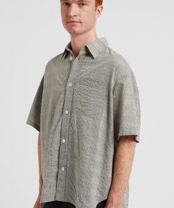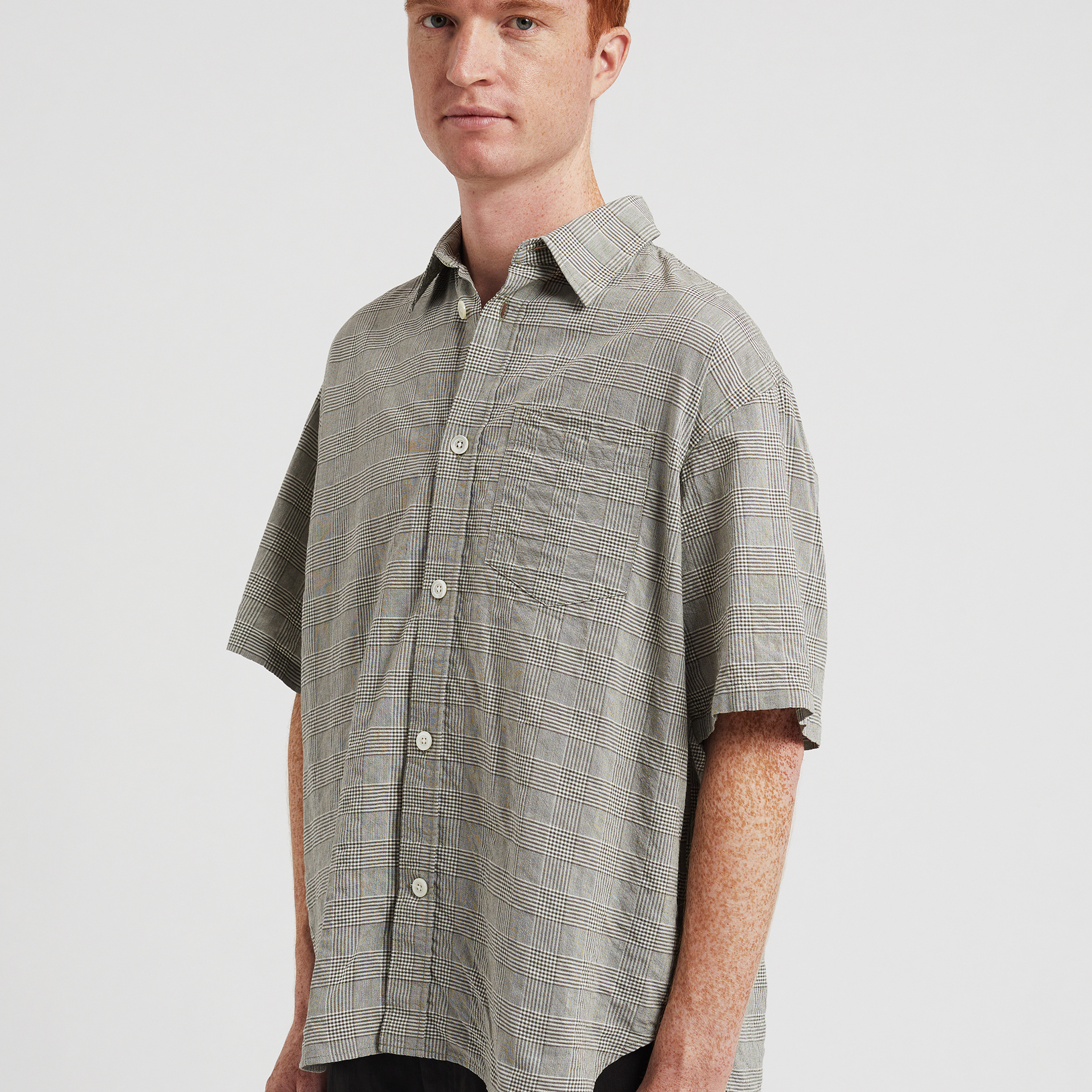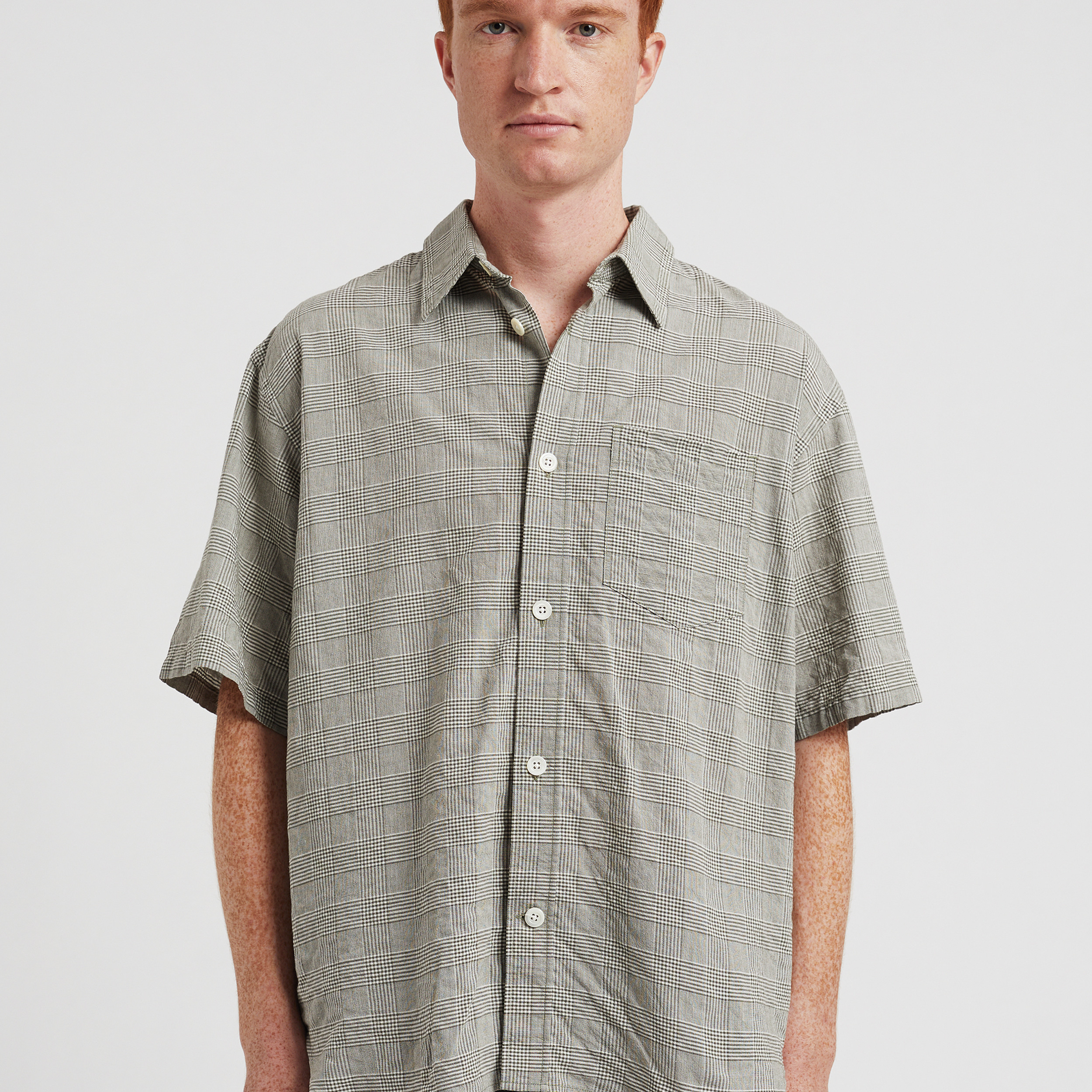 loading…Size ChartShippingAdd to CartA relaxed fitting short sleve shirt, with a wider cut body. This shirt is constructed with an Italian fabric that has a check design, and a slight crinkled appearance. This shirt is finished with a chest pocket and mother of pearl buttons.