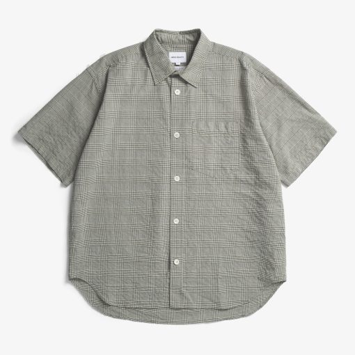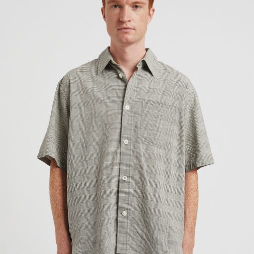 loading…Size ChartShippingAdd to CartA relaxed fitting short sleve shirt, with a wider cut body. This shirt is constructed with an Italian fabric that has a check design, and a slight crinkled appearance. This shirt is finished with a chest pocket and mother of pearl buttons.