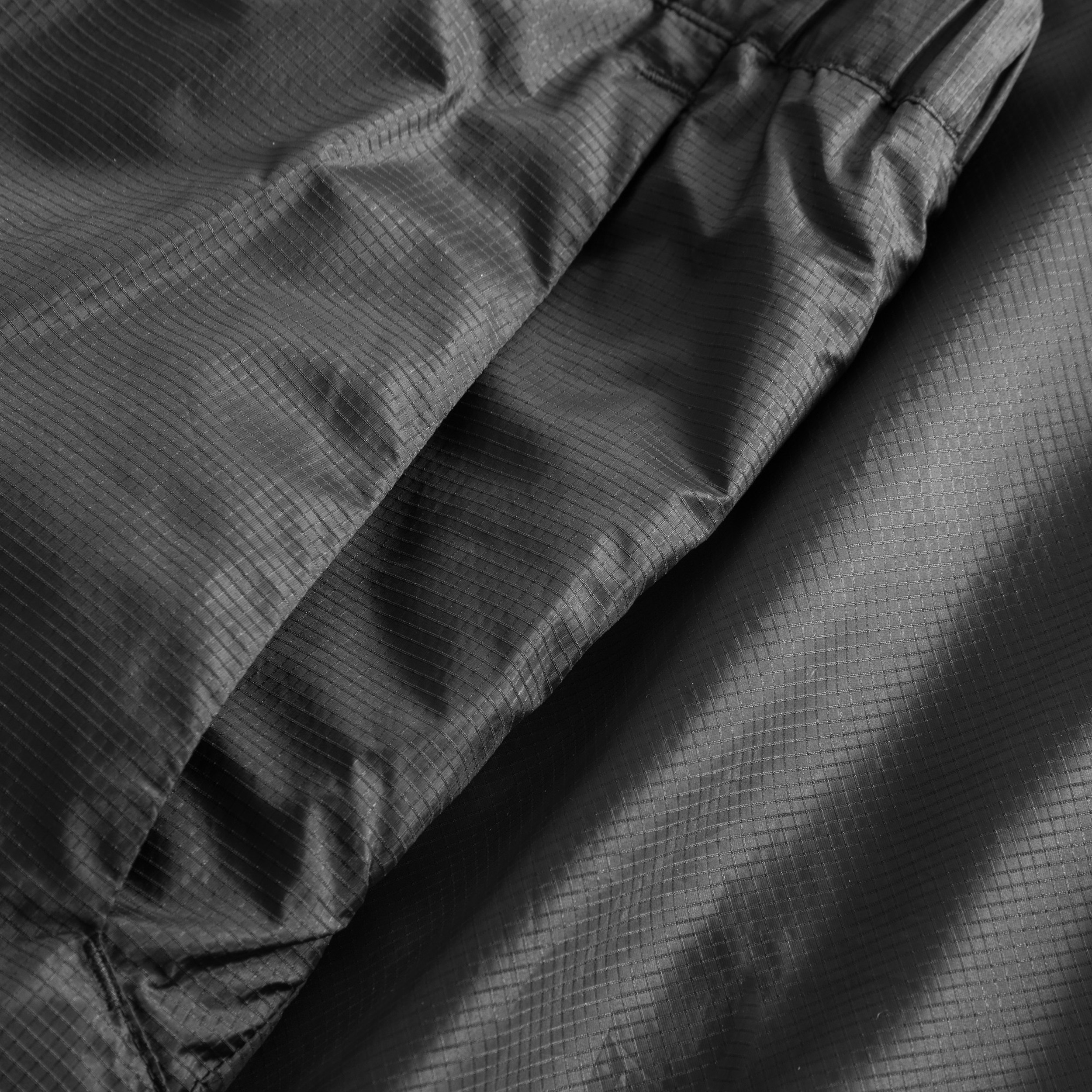 The shell fabric utilises Pasmo™ yarn technology. PASMO™ yarns are woven to create structural optimisation. The yarn arrangement and density results in a textured yet even appearance with a high tensile strength and excellent abrasion resistance. A durable water repellent (DWR) finish applied to the fabric sheds light rain and snow, which helps to maintain weather proofing and breathability.