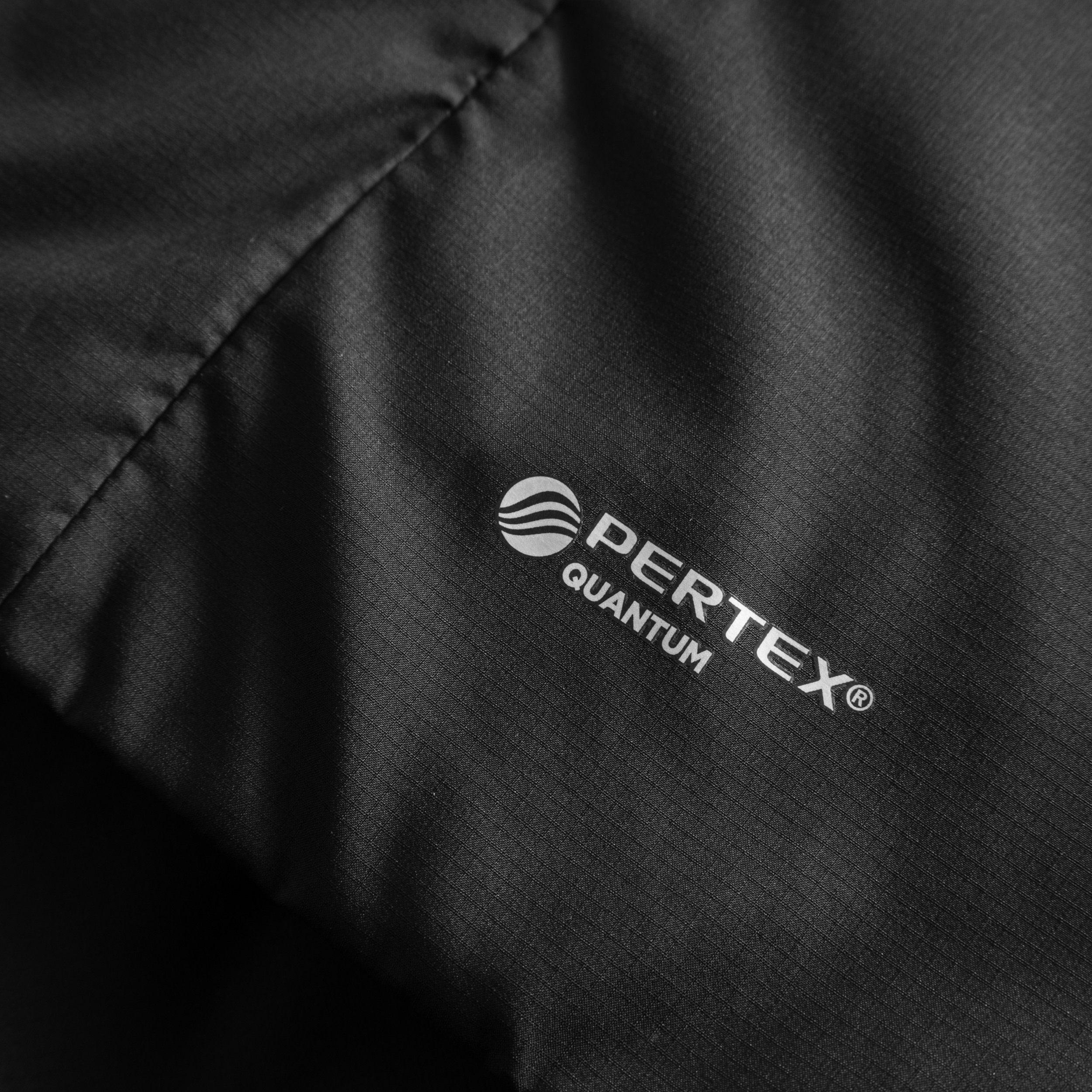 An insulated shirt jacket utilising Pertex® Quantum technology; a technical fabric that uses a tightly woven structure to provide a light and soft windproof fabric that allows insulation to fully loft. This construction is designed to trap still air and improve the efficiency of insulation. This textile is 50% recycled and finished with a PFC free DWR finish that sheds light rain and snow to provide additional protection. Features include a raglan sleeve cut for movement, a front chest pocket with water repellent PU coated zip front. This jacket has a hidden back attachment strap making it compatible to wear with Norse shell pieces.