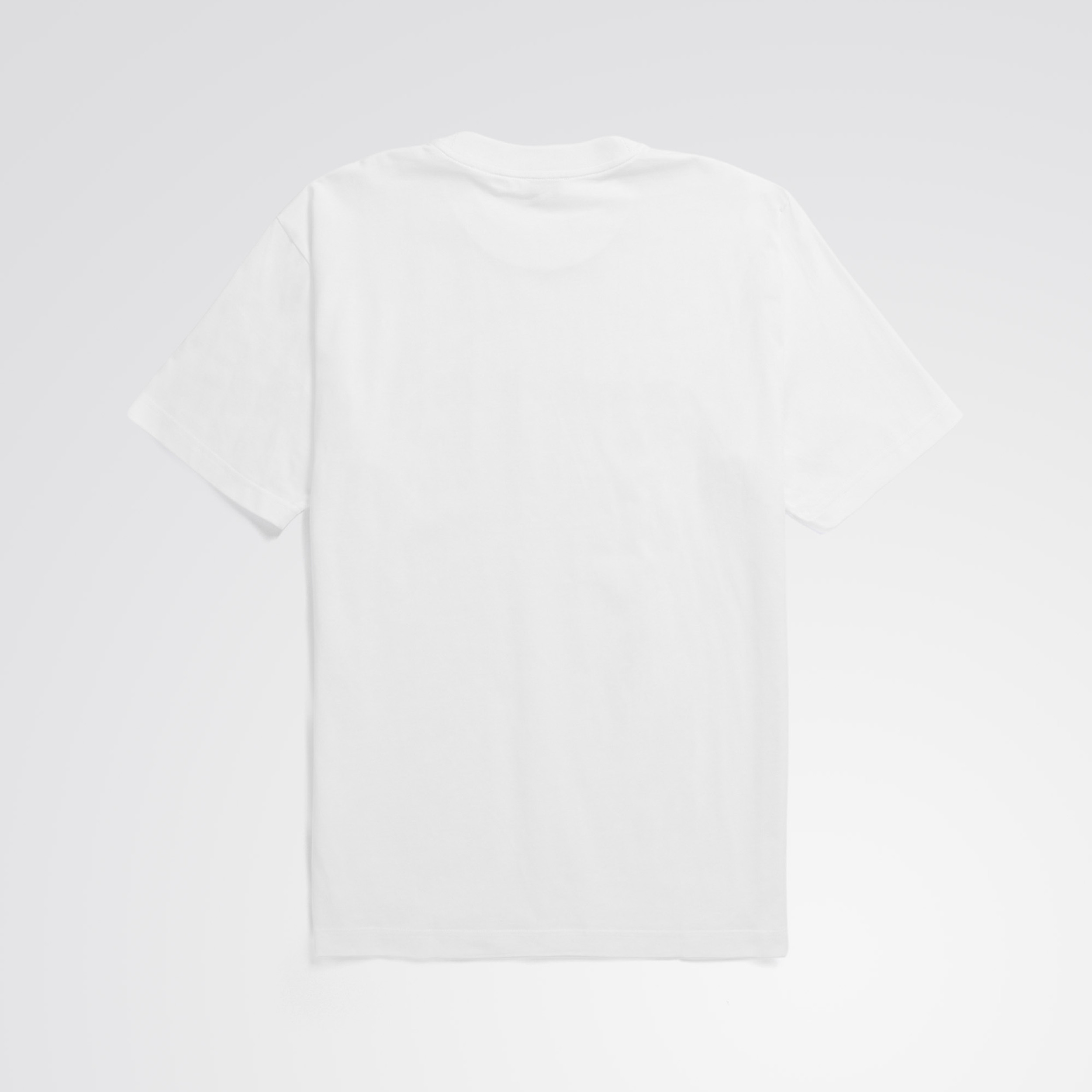 A loose fitting t-shirt cut from midweight organic cotton cloth. It features an injection printed logo artwork on the chest and a ribbed collar with a finished hem and cuffs.