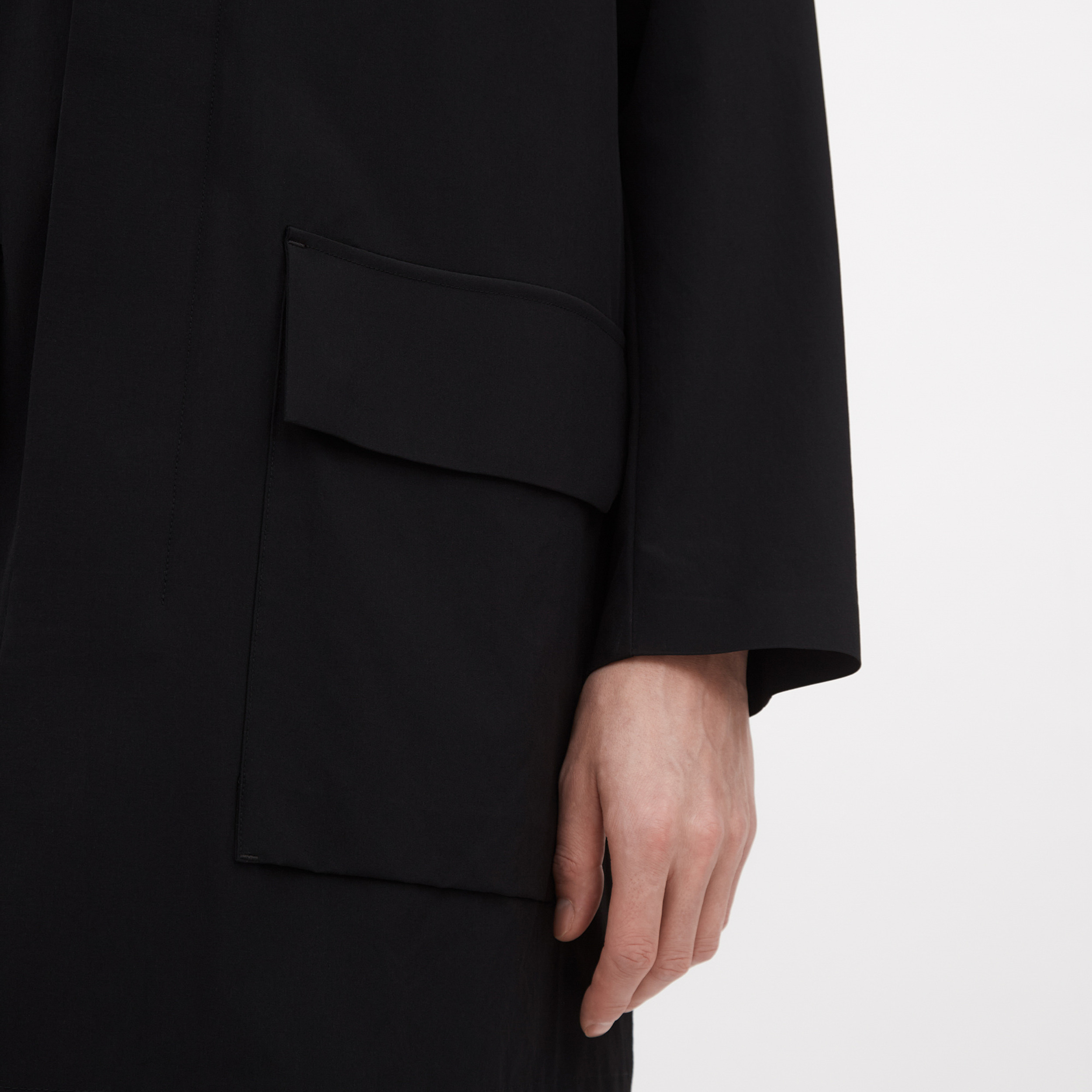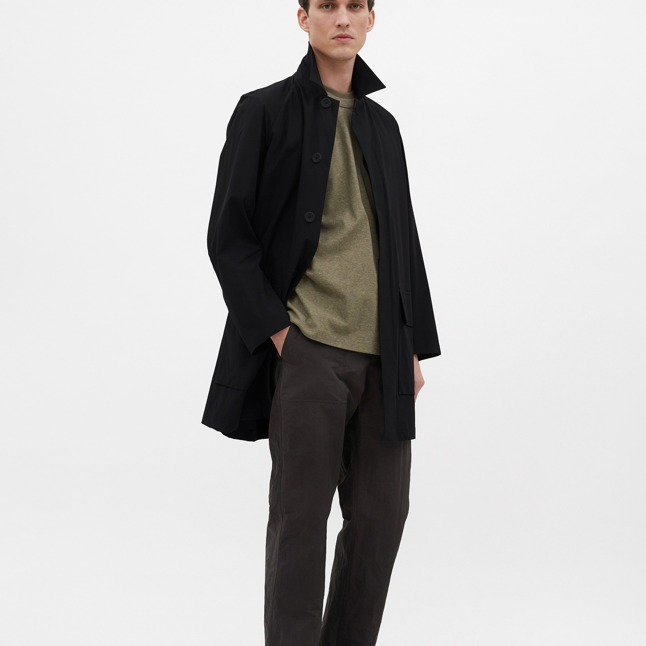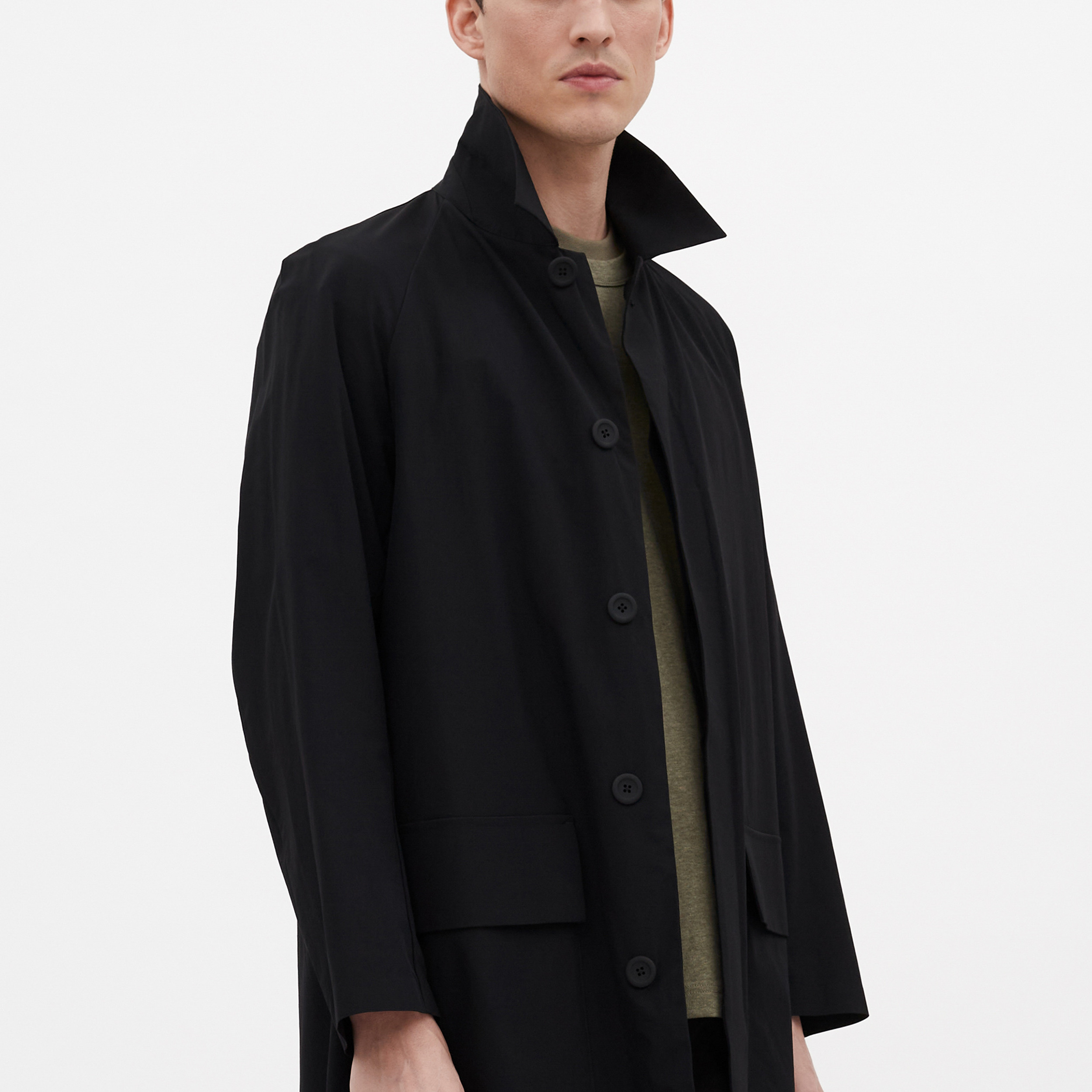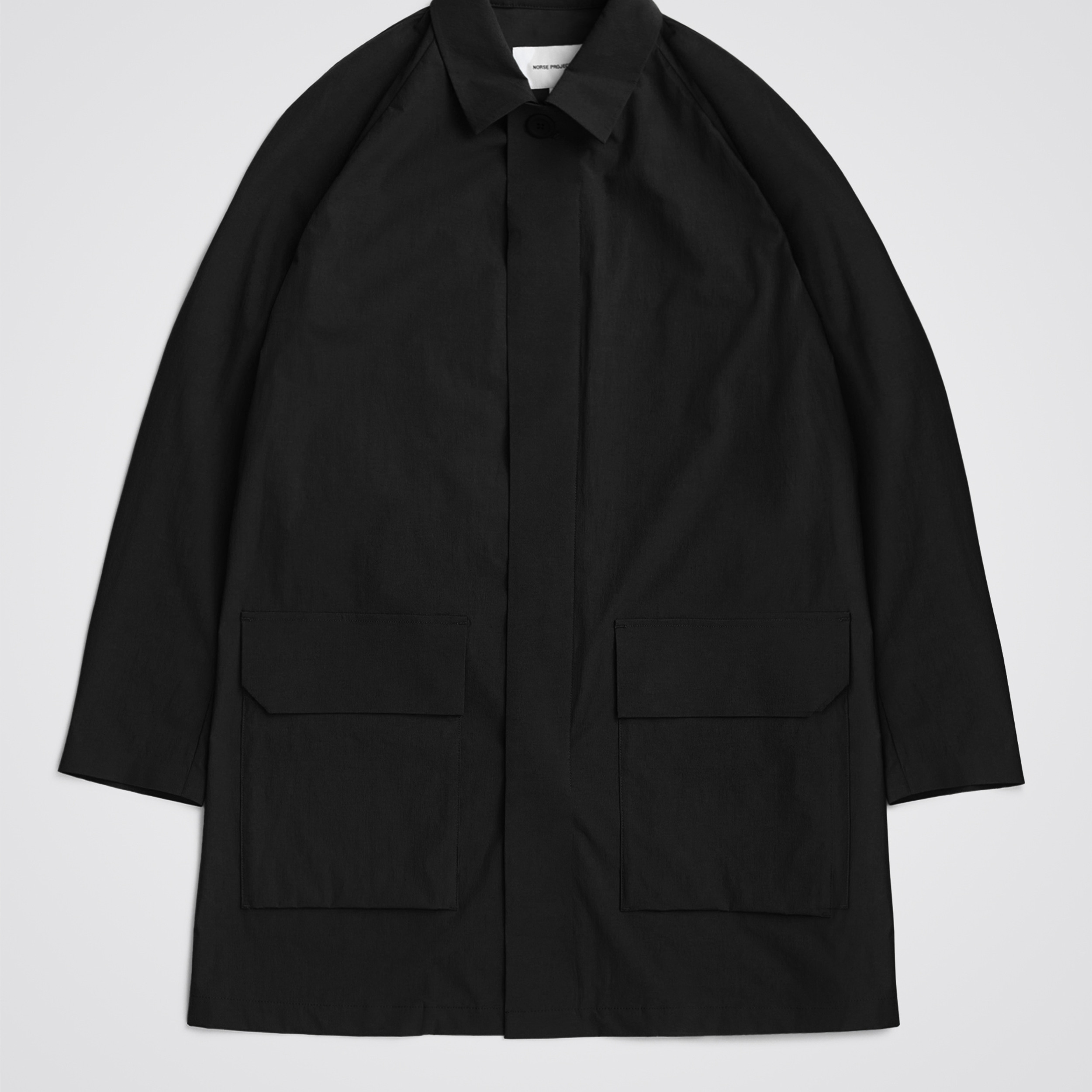 A mac coat constructed from a fast drying, and lightweight fabric. This fabric is woven in a way that provides stretch both vertically and horizontally for ultimate comfort. The style features patch pockets, back vent, raglan sleeves, and finished with rubberised buttons. The Vargo is unlined for minimal weight.