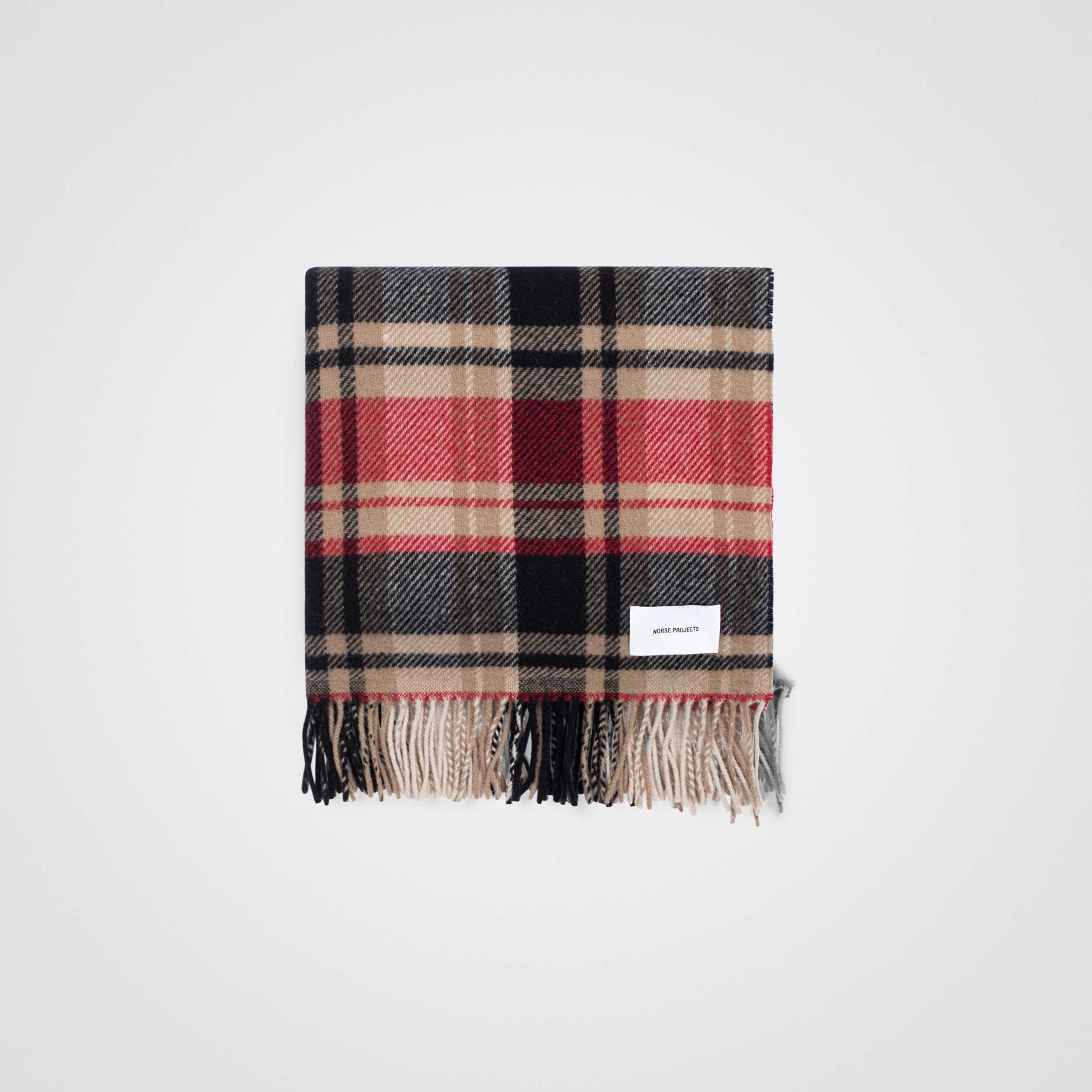 NORES PROJECTS Virgin Wool Checked Scarf Holmen Red | SHOP ACCESSORIES