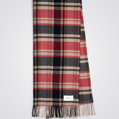 NORES PROJECTS Virgin Wool Checked Scarf Holmen Red | SHOP ACCESSORIES